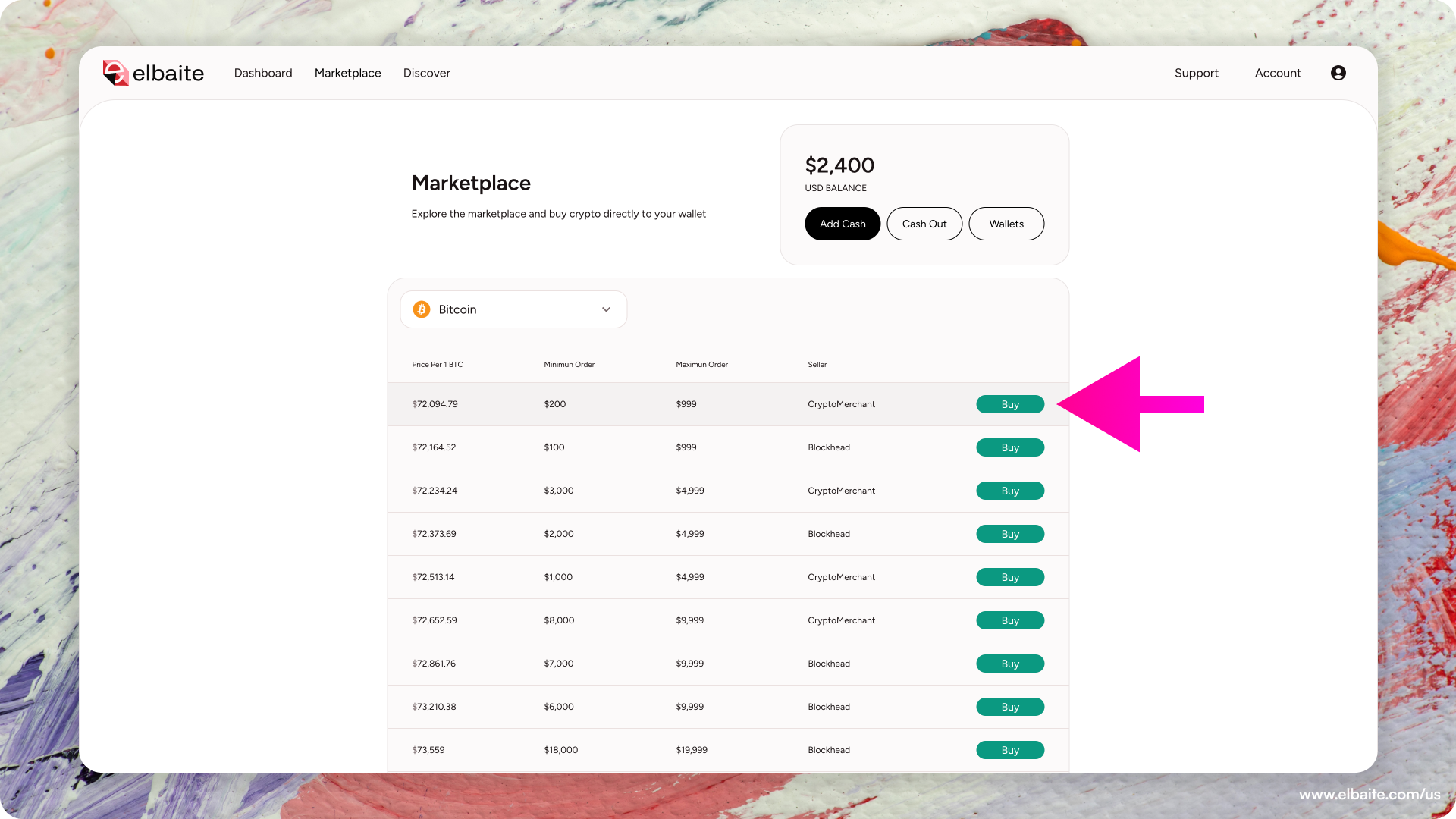 You will now land in the marketplace. The marketplace is a collection of offers to sell crypto.