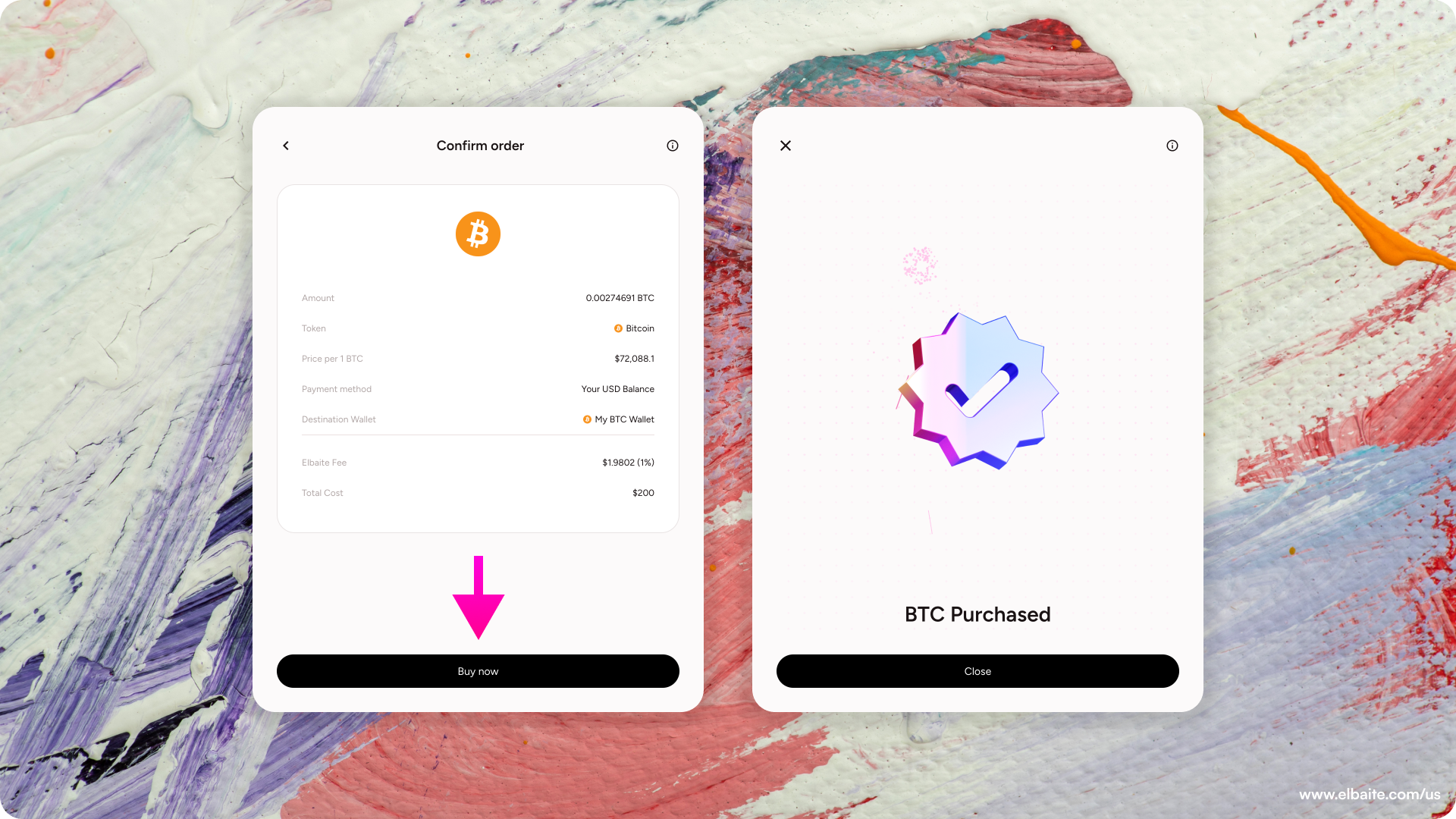 Here you can view a summary of your order before executing it. Once confirmed, click 'Buy now' and your order will be placed.